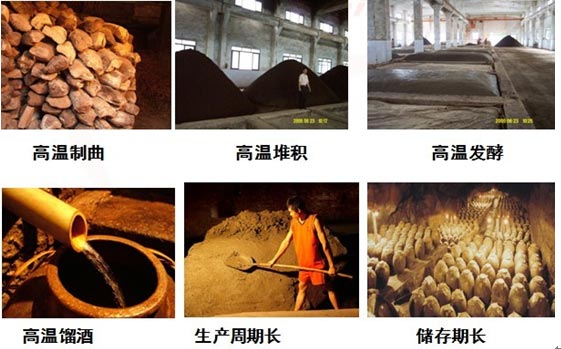 茅臺鎮(zhèn)的醬香型白酒在用料上采用當?shù)氐募t纓子糯高粱釀酒,這種高粱不同于北方的高粱,它皮薄但堅硬,能夠經(jīng)過多次蒸煮。醬香型白酒要取七次酒。第一次和第二次蒸煮后都不取酒,所以加上七次取酒的蒸煮,一共是九次蒸煮,一蒸生沙,是原料清蒸;二蒸糙沙,是混蒸;三至九次蒸回沙。